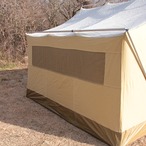 ご夫婦やカップルでの2人使用から、4~5人使用のファミリーテントまで幅広い汎用性があります。コットン100%なので通気性が良く、寒い時期の薪ストーブ、灯油ストーブにも適しています(換気には十分に気を付けてください)。またナイロン幕などより透湿性が高いため結露が少なく、朝起きてシュラフが濡れているなどの心配も少ないです。何よりもコットン素材による光の透け感が雰囲気良く、夜にテントの外からの写真映えはたまりません。夜の画像も掲載しておりますのでご参照ください。