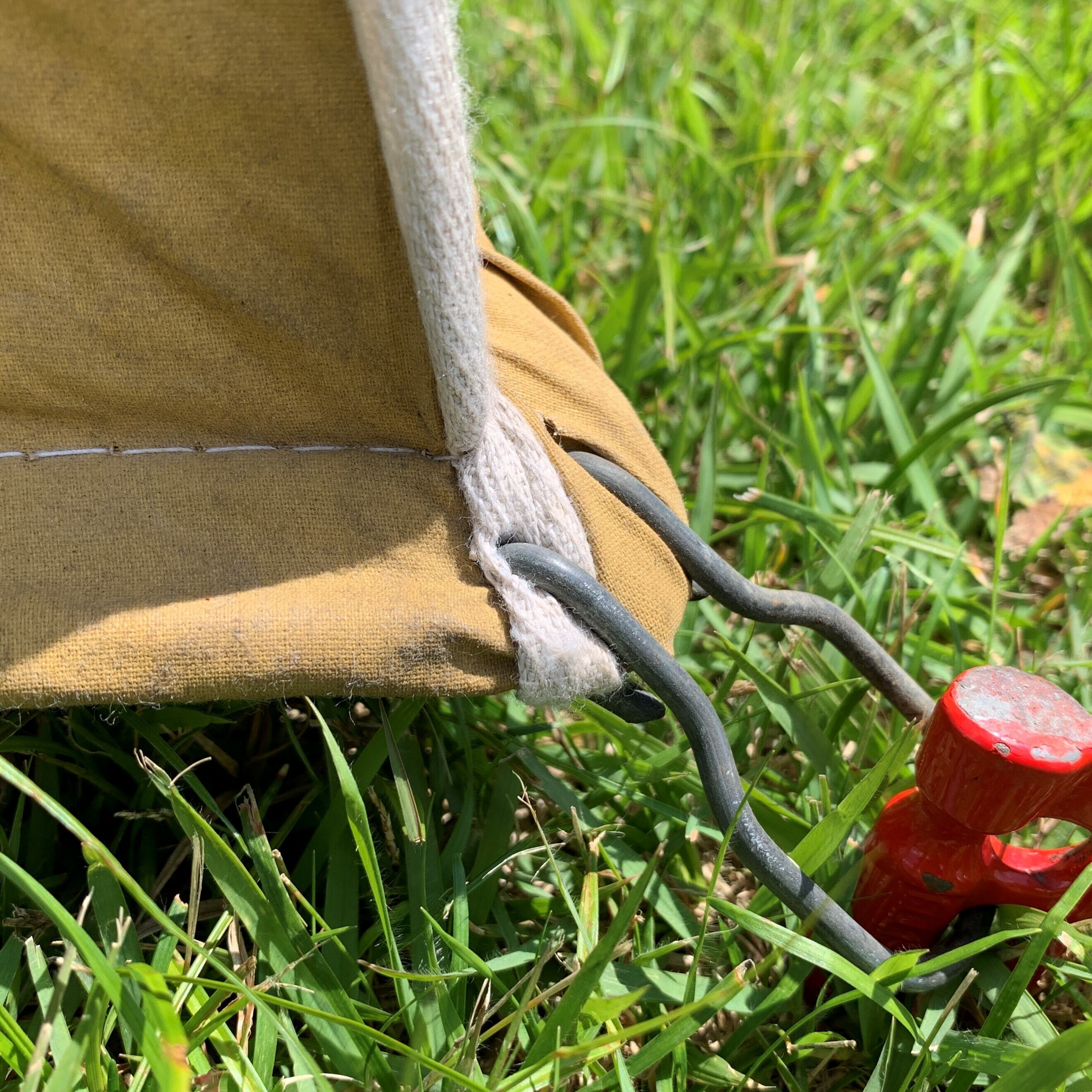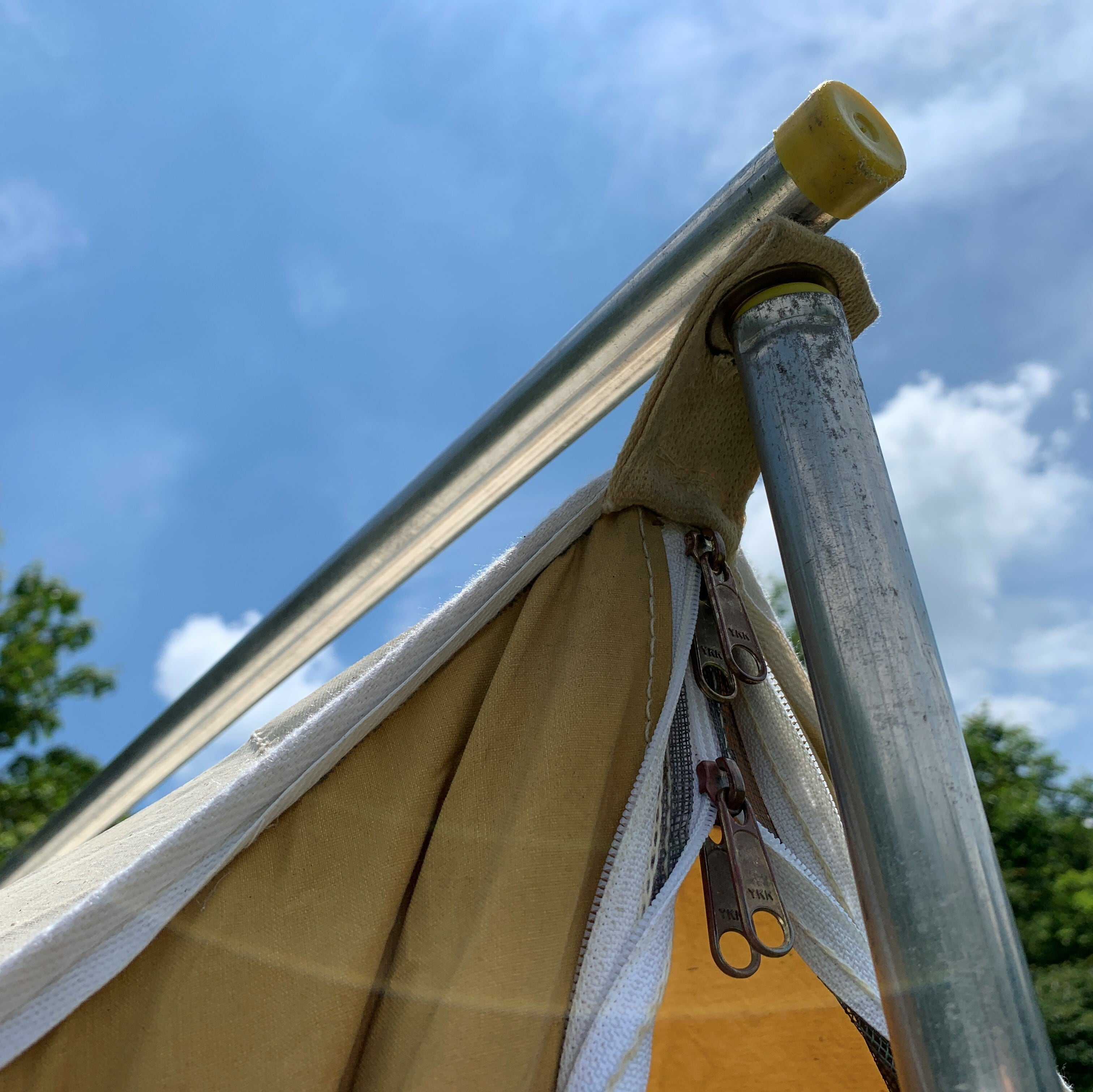 テント幕を支えるポール類ですが、凸のある設営ポールは現状問題ありませんが、設営には気を付けないとプラスチック部が欠ける恐れがございます。すべてオリジナルポールになります。