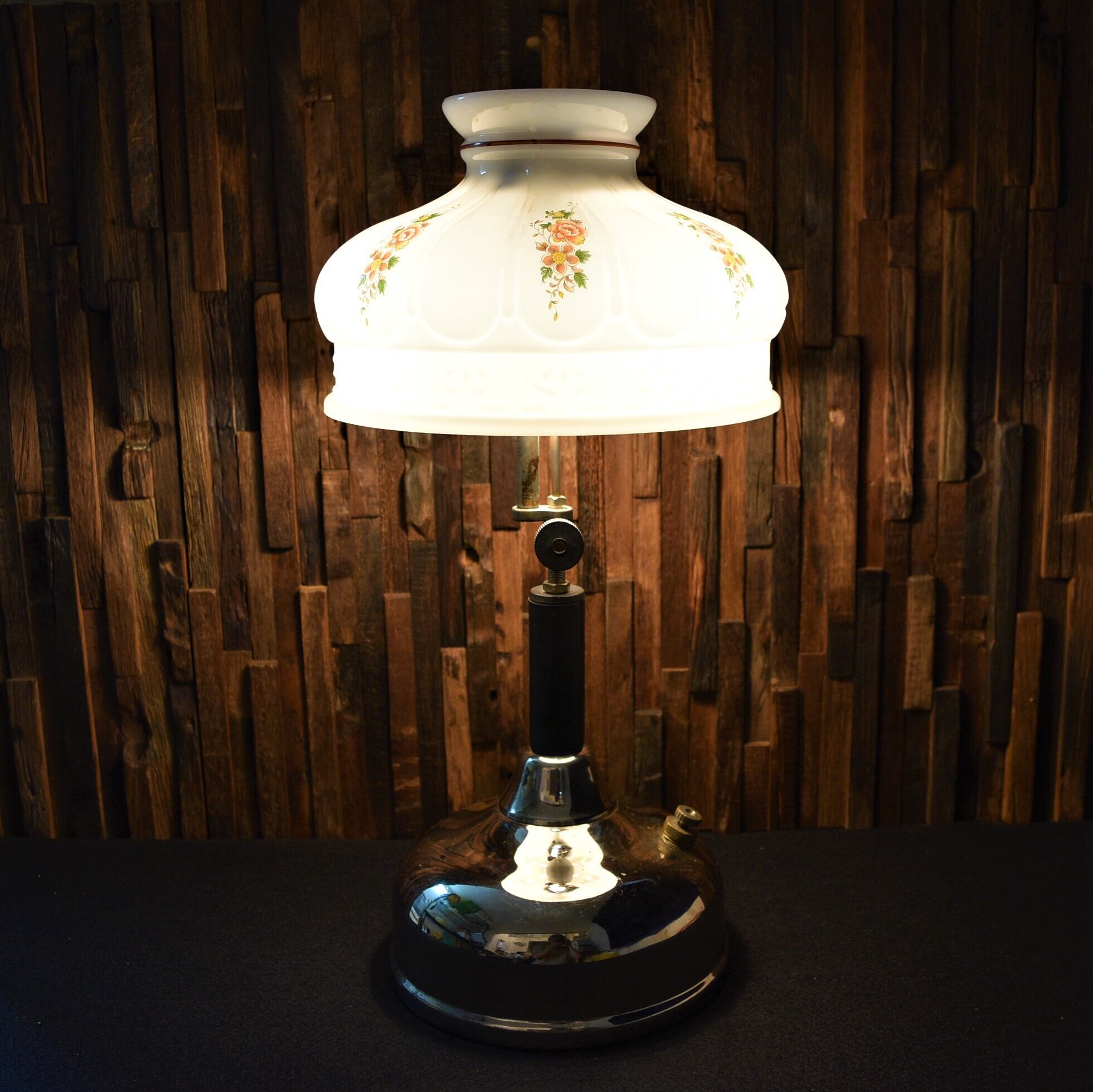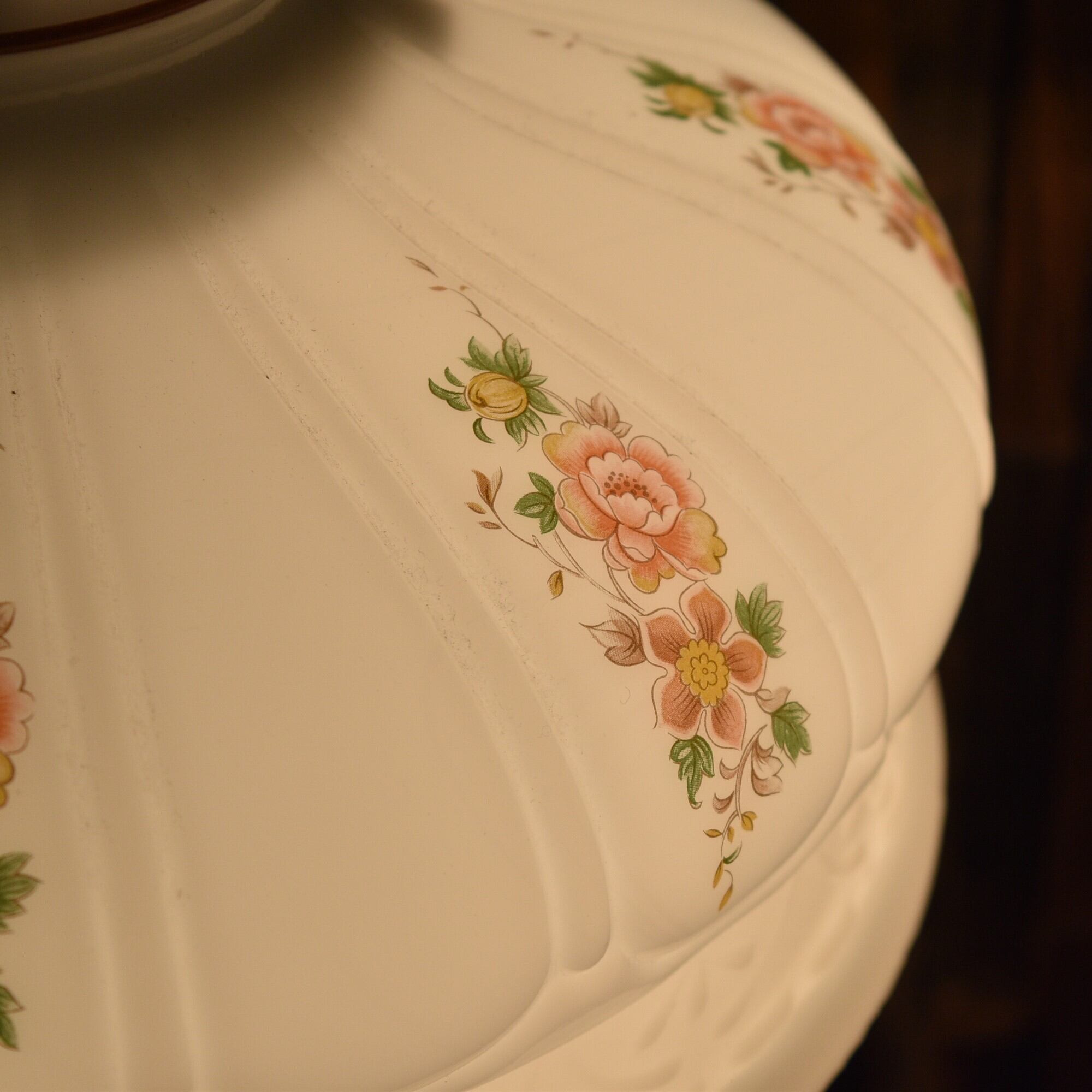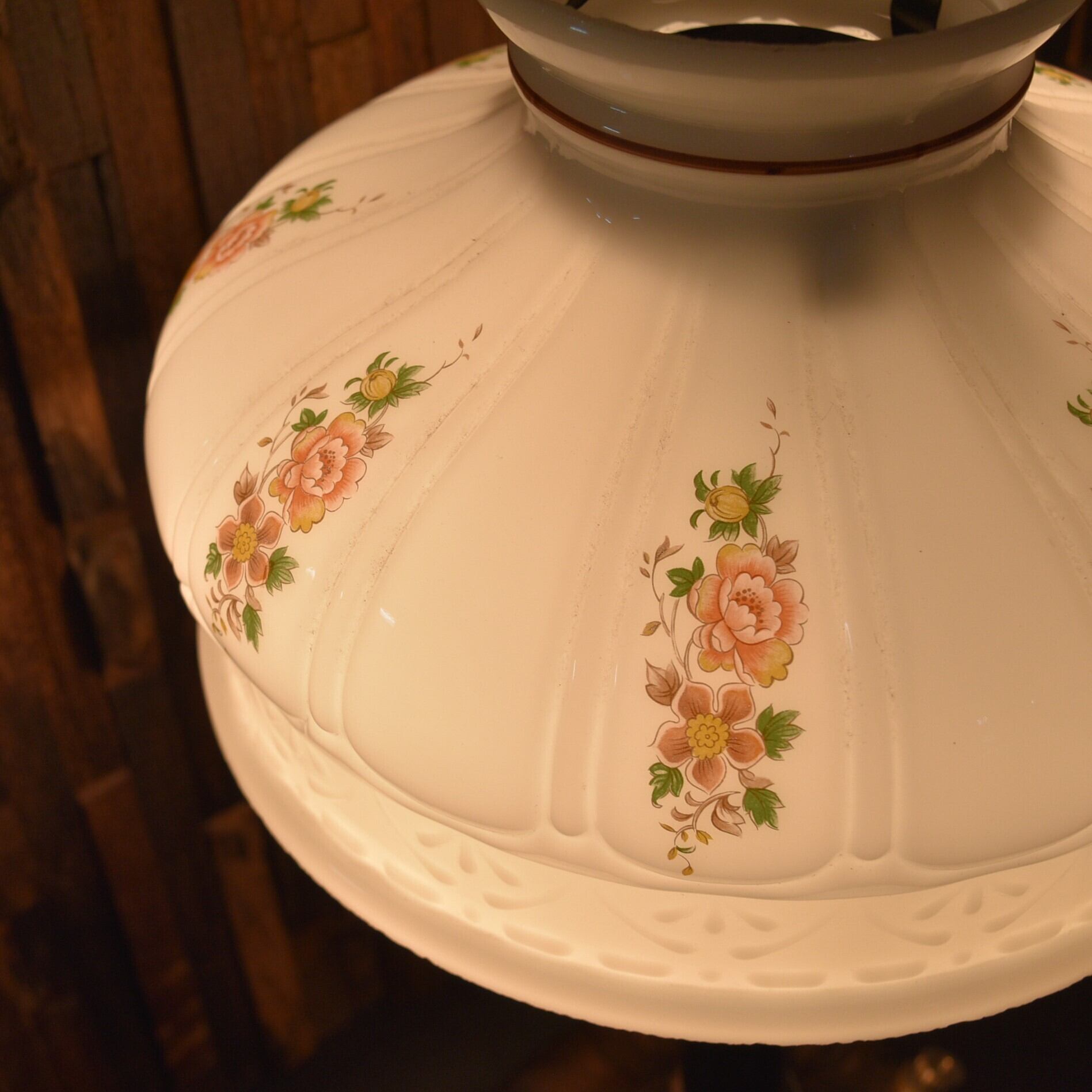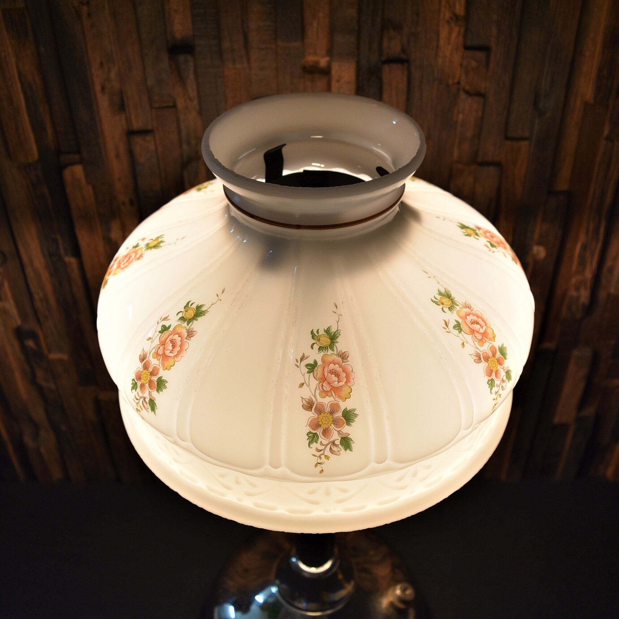 フラワー柄プリント ホワイトオパール ミルクガラスシェード クイックライト WHITE OPAL MILK GLASS SHADE for QUICK-LITE コールマン テーブルランプ CQ 10インチ ホルダー