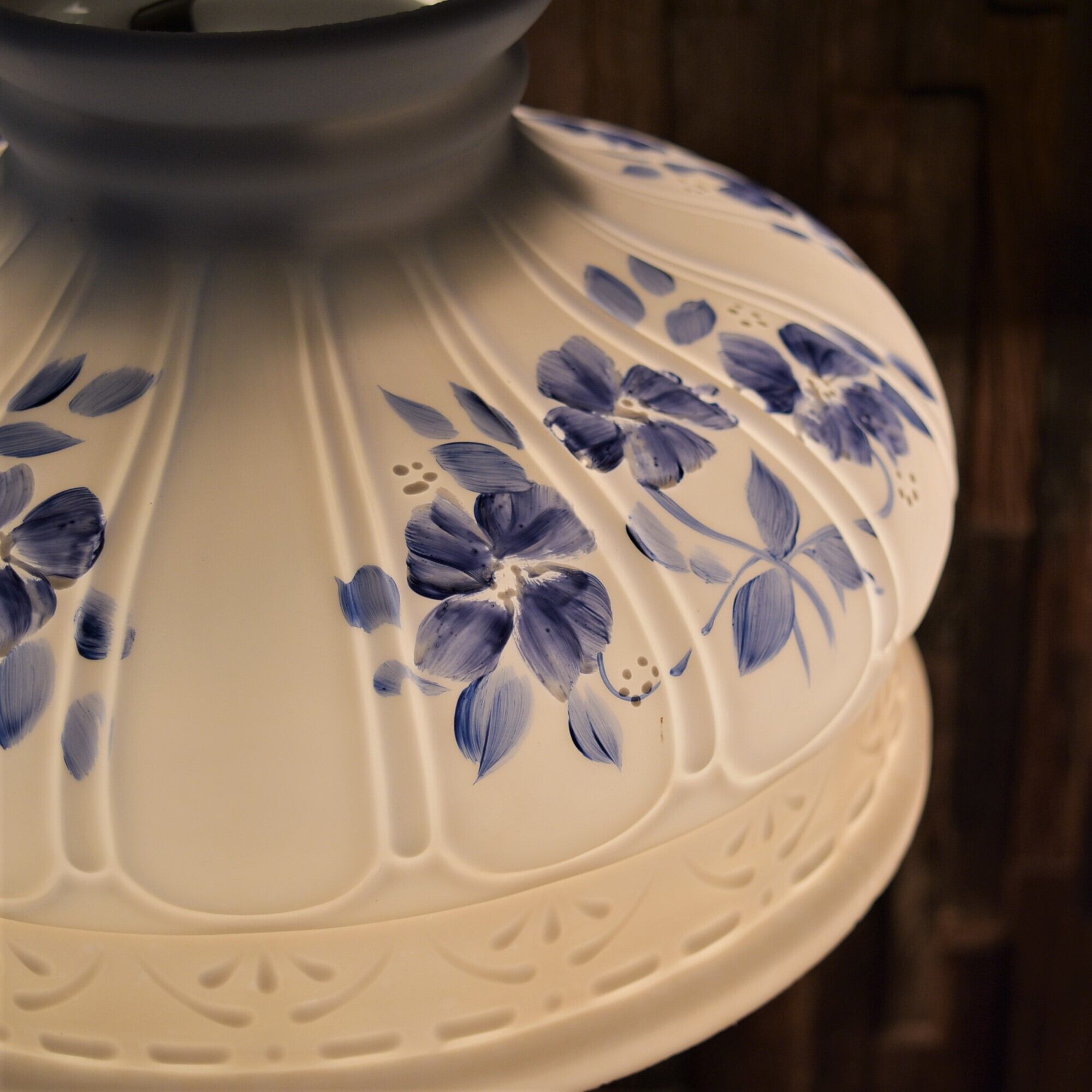 既成のホワイトオパールにハンドペイントがフラワーモチーフがあしらわれた素敵なシェード。レトロな雰囲気とハンドペイントならではの手描き感がたまりません。「ハンドペイント」という響きに惹かれますね。