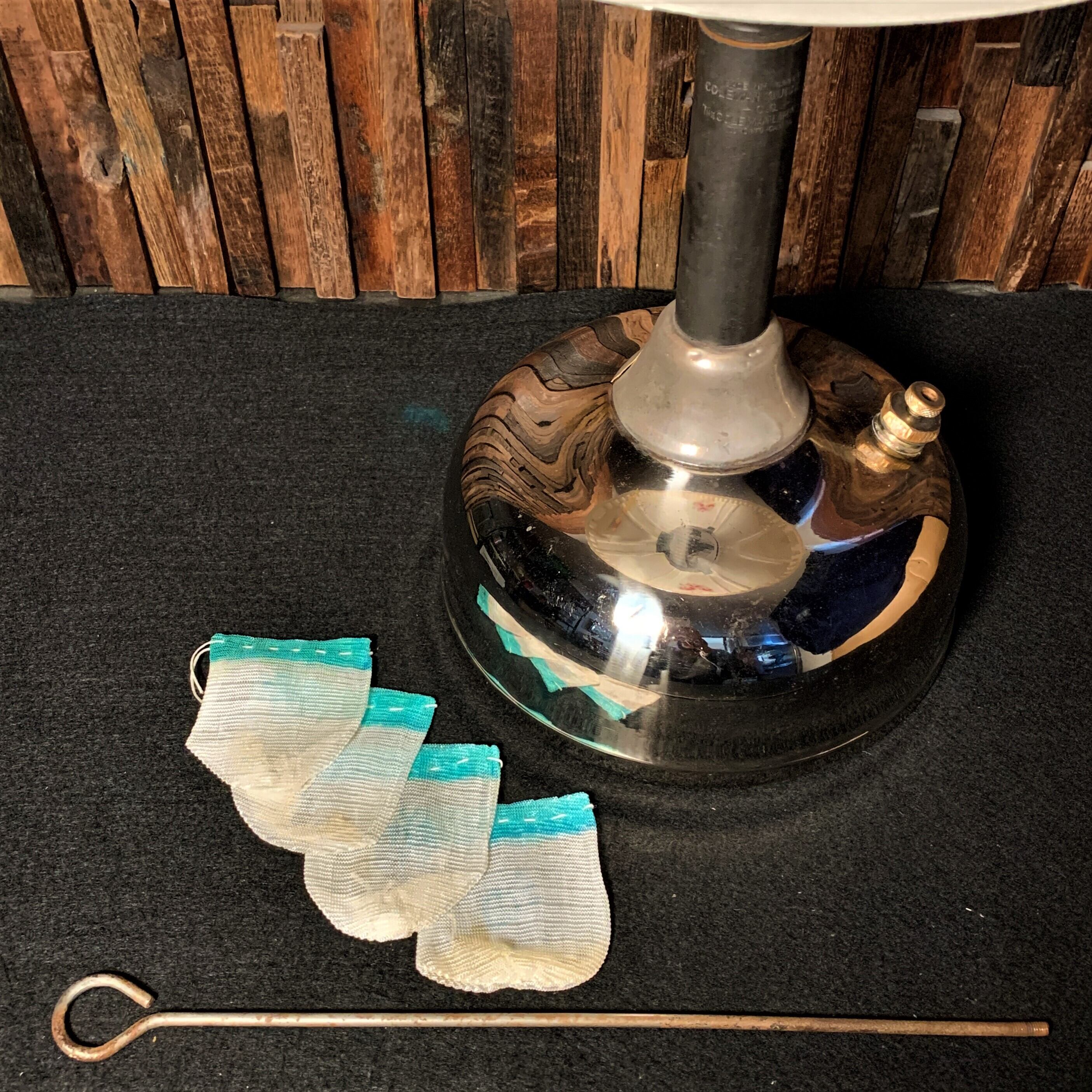 カナダ コールマン クイックライト ビンテージ テーブルランプ花柄シェード 329型 ホワイトオパール ミルクシェード 完全分解清掃 点火良好 鏡面仕上げ シルバー