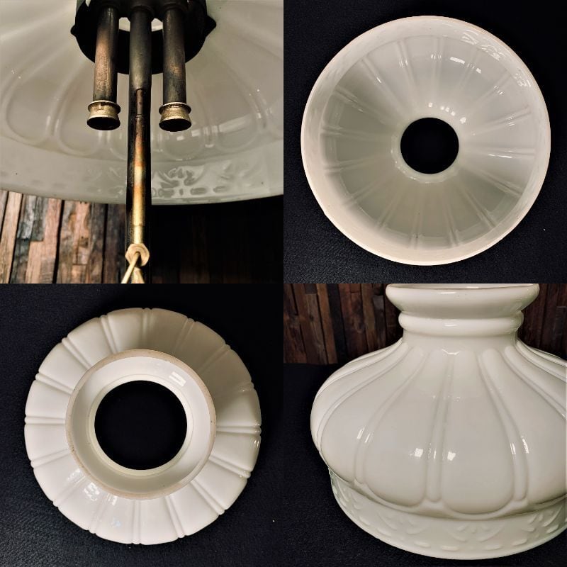 ガラスシェードは当時のオリジナルホワイトオパールになります。経年保管によるこまかなキズ、ヨゴレなどございますが、全体的には良好な状態です。
