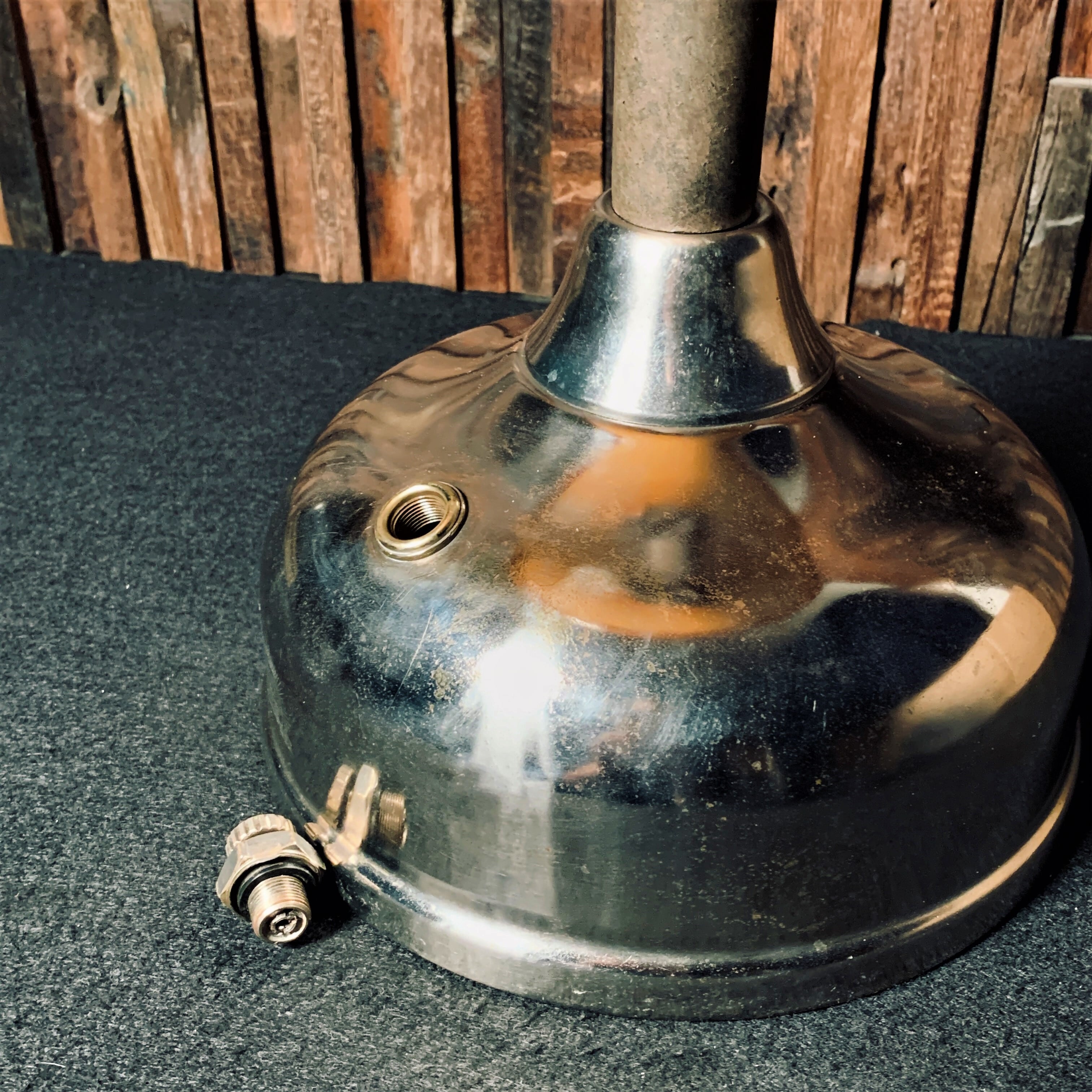 テーブルランプ本体は分解後、磨きをかけてメンテナンスを施してあります。メッキタンクには鏡面仕上げをしてありきれいな状態です。1時間ほど点火確認してありますが、ちらつきもなく燃焼良好です。