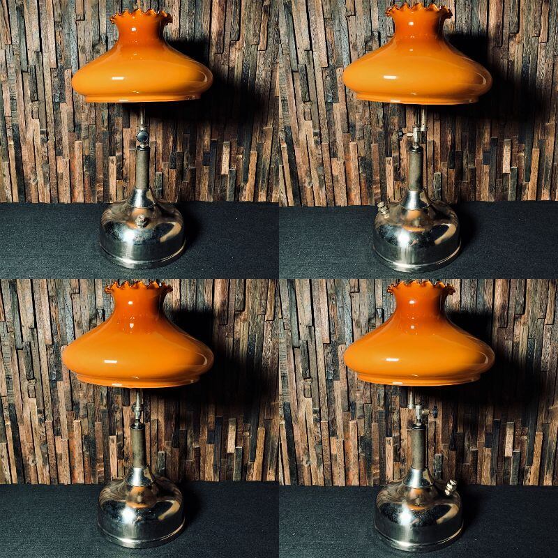 コールマン クイックライト CQ ビンテージ テーブルランプ アンバーシェード フロストガラス 完全分解清掃 点火良好 鏡面仕上げ シルバータンク