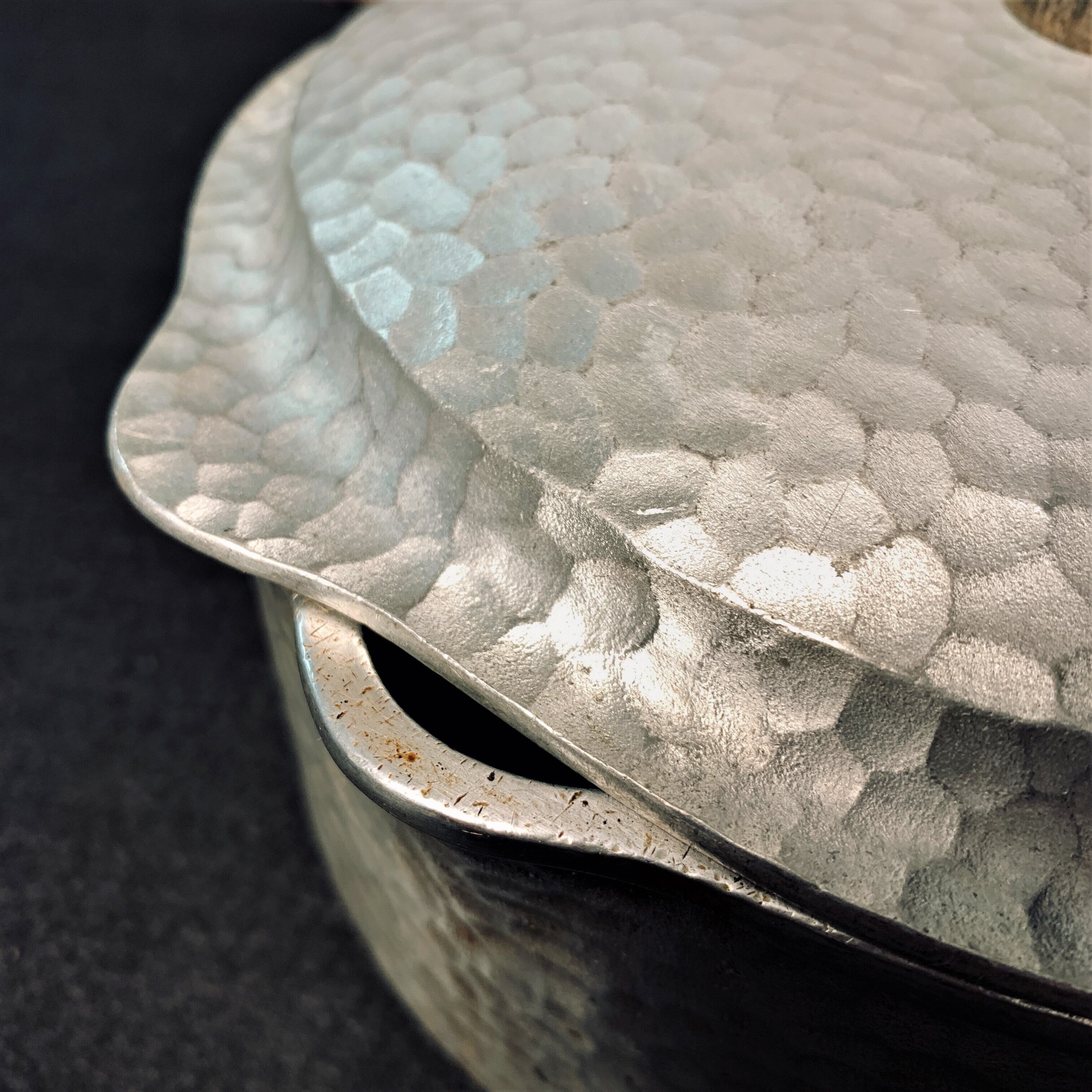 ワグナーウェアの中でも職人が一点一点ハンマーで軽く叩きながら外を固めていくハンマード製法で、大変手間がかかることから生産数が非常に少ないと言われています。また、ひとつひとつ違った風合いになるのが特徴で、(細かくみますと)それぞれが世界に一つしかないロースターとなっています。ビンテージギアをお好きな方には、サイトの統一感が出て大変おすすめです。