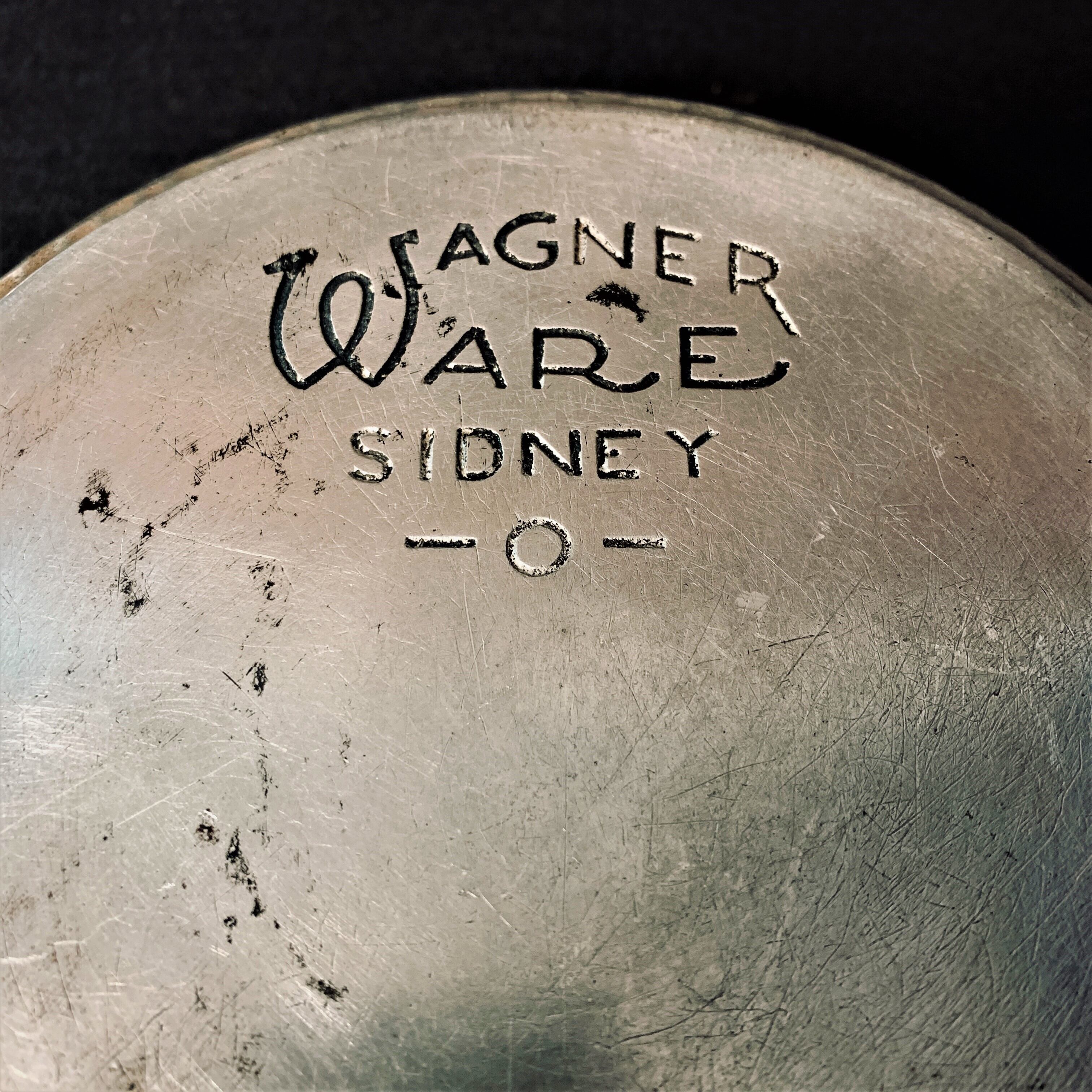 正確な年代は不明ですが、1940~50年代に製造されたものですでに約80年が経過しています。創業して歴史の古いWAGNER WARE社ですが、1800年代後半から鋳鉄製品を作り続け、世界恐慌に対抗するため1940年代頃よりアルミ製品に力を入れ、当時はとても軽量で大変頑丈な造りで人気を博しました。鋳鉄製品のような面倒なメンテナンスが必要なく、家庭でも扱いやすく簡単においしい料理を作れることから同社の主力商品になっていきます。