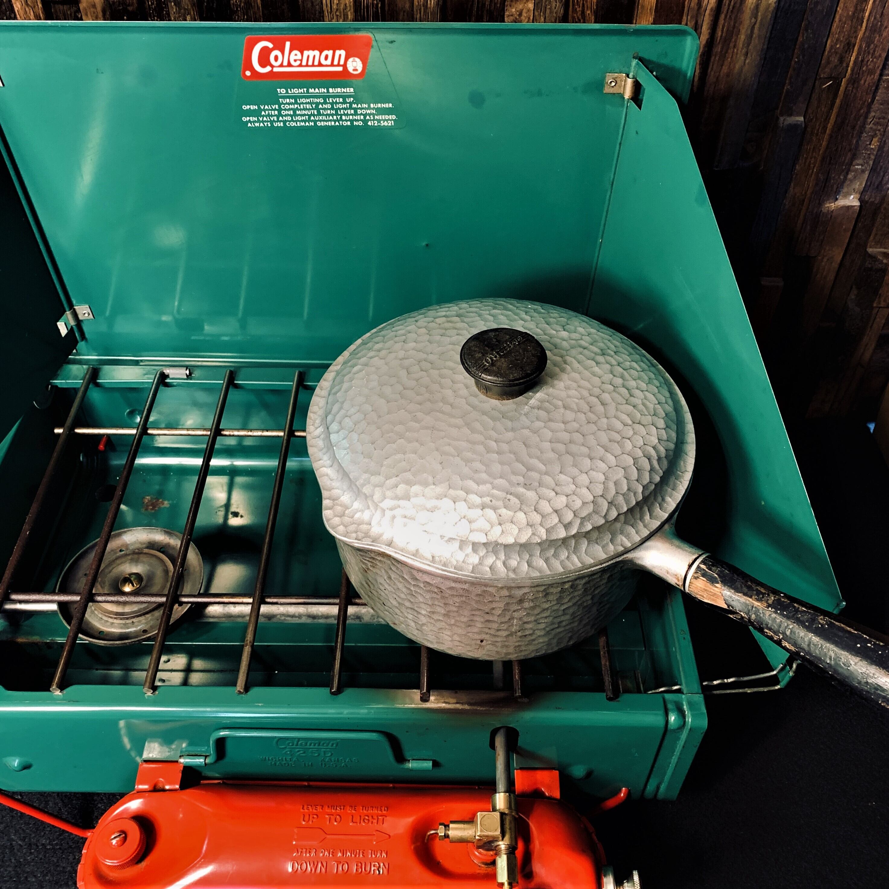 ワグナーウェア社の少し珍しいアルミ製ロースターになります。ウッドハンドルが付きますので、ロースターやダッチオーブンなどとはまた少し変わった料理ができますね