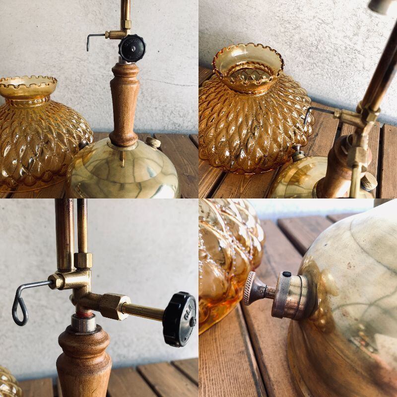 《SP》コールマン NO.152 ビンテージ テーブルランプ 1947年1月製造 ブラスタンク ホワイトガソリン ダイヤモンド柄アンバーシェード 完全分解清掃 点火良好 ゴールド USA製 超美品 SPECIAL