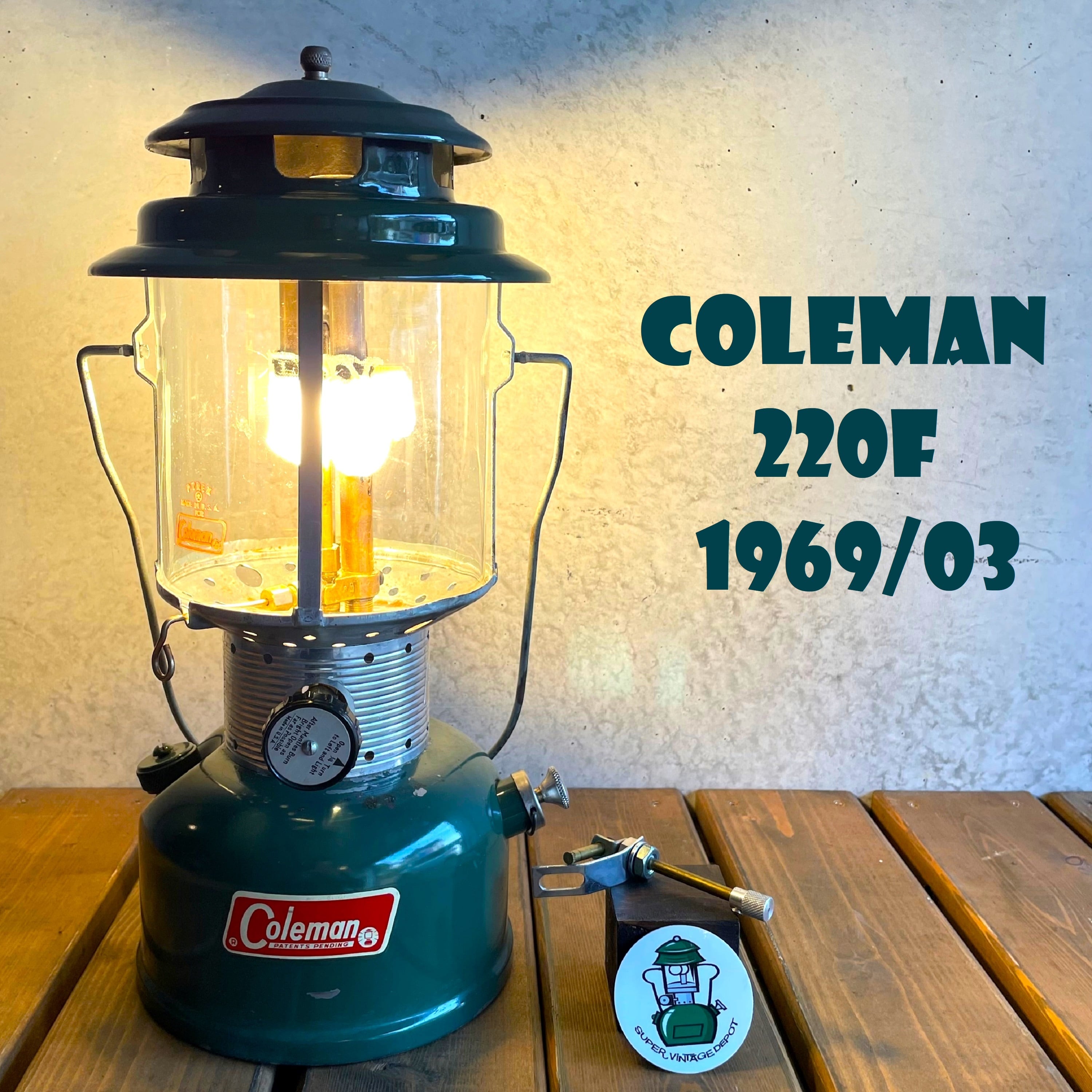 コールマン 220F前期 パテペン 1969年3月製造 ツーマントル ランタン COLEMAN ビンテージ パイレックスグローブ 完全分解清掃メンテナンス済み イグナイター付き 点火絶好調